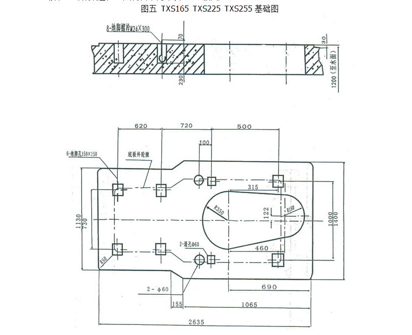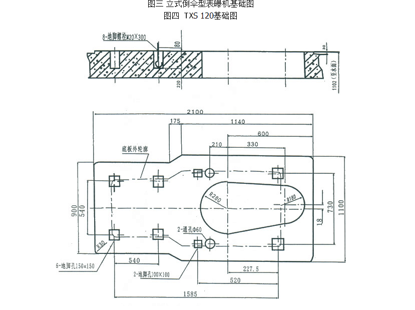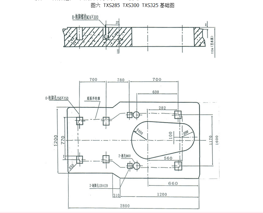 3、地腳孔也可做成通孔,但須配用雙頭螺栓、墊板固定。